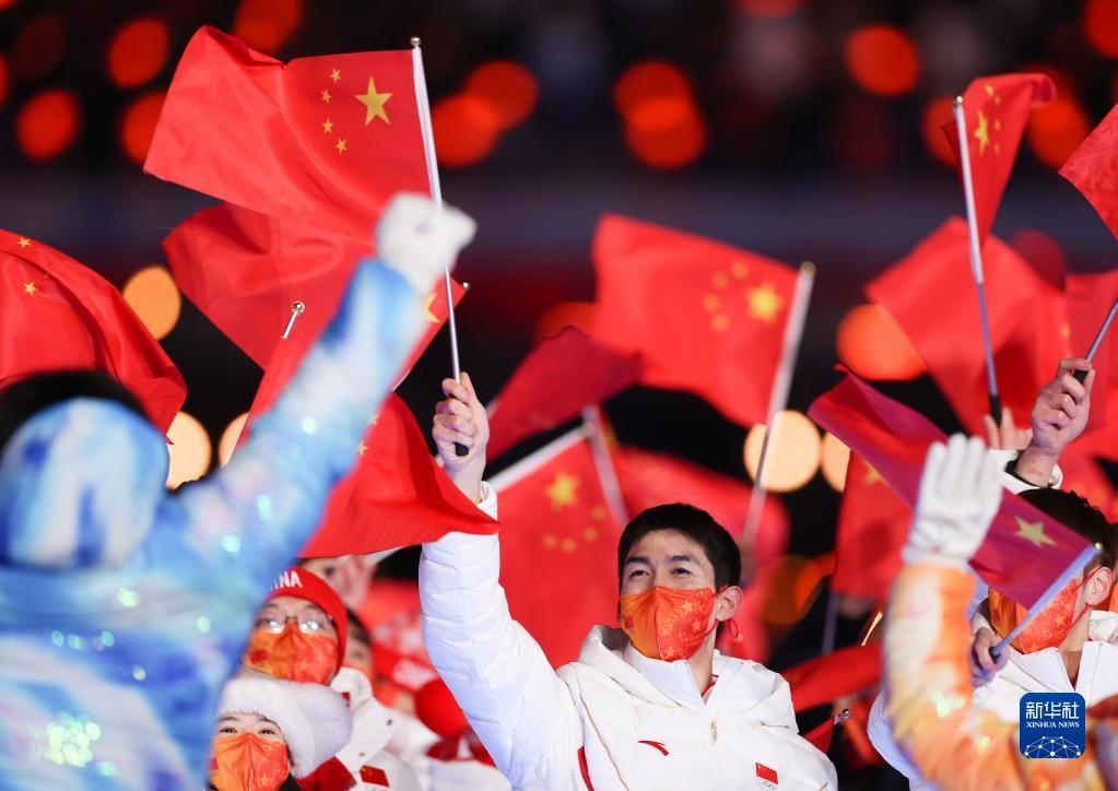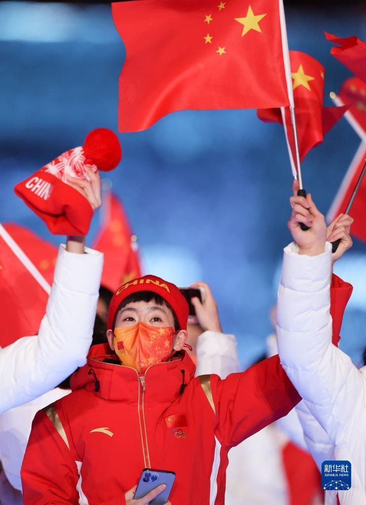 這是中國(guó)代表團(tuán)成員在閉幕式上入場(chǎng)。