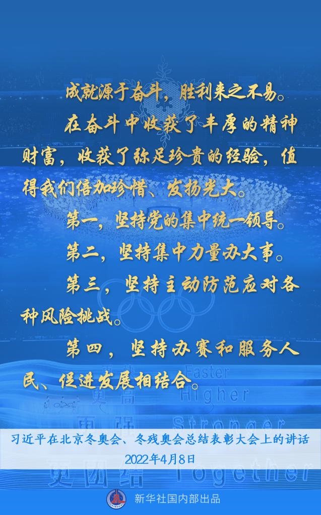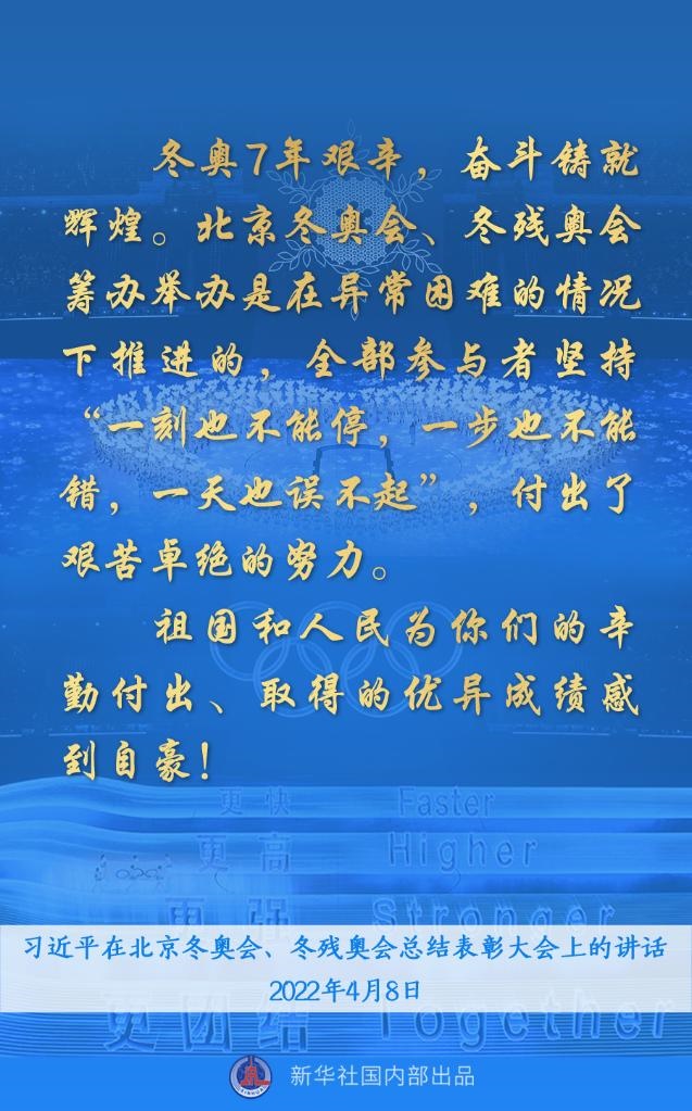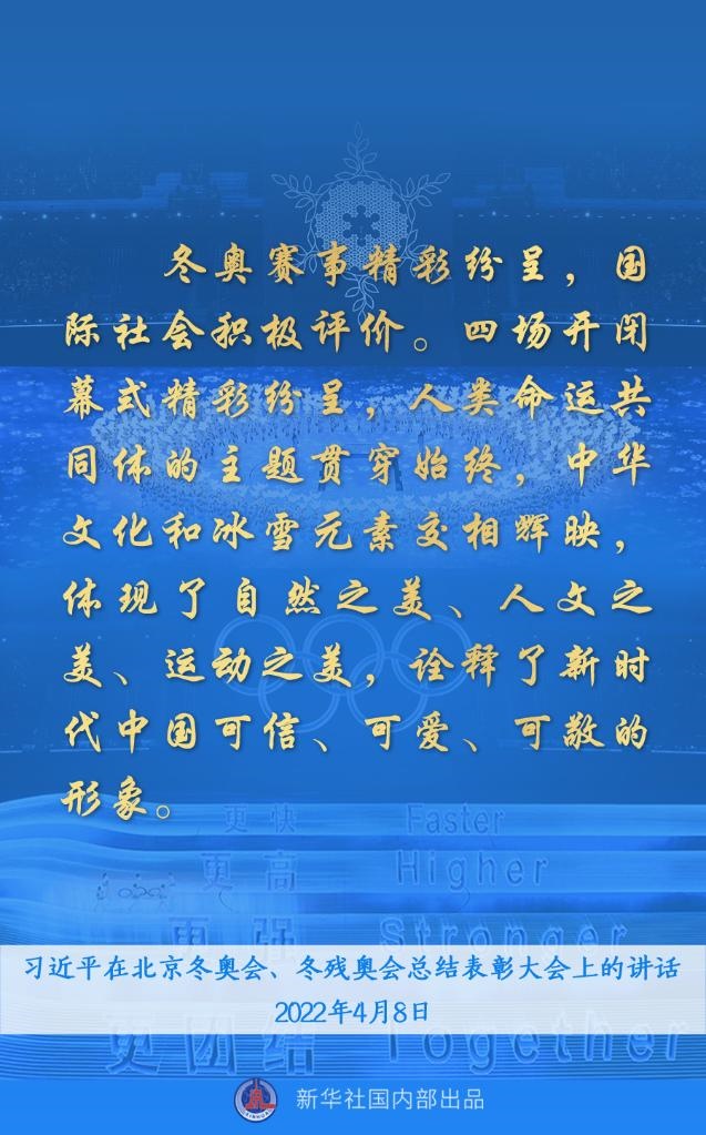 8日上午,習(xí)近平總書(shū)記在北京冬奧會(huì)、冬殘奧會(huì)總結(jié)表彰大會(huì)上發(fā)表重要講話(huà)。一起來(lái)看金句↓