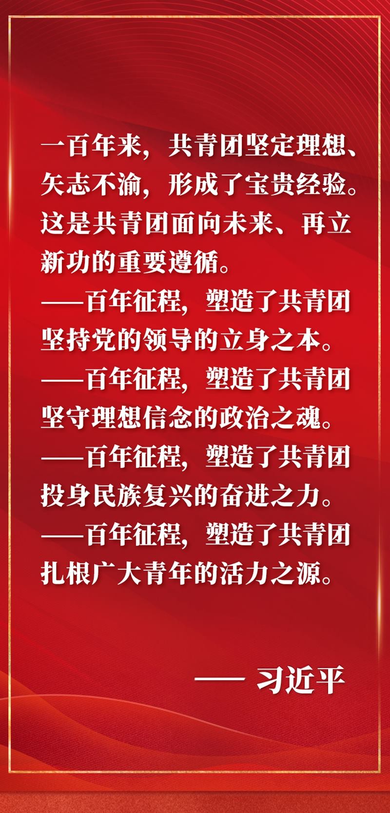 慶祝中國(guó)共產(chǎn)主義青年團(tuán)成立100周年大會(huì)10日上午在北京人民大會(huì)堂隆重舉行。中共中央總書(shū)記、國(guó)家主席、中央軍委主席習(xí)近平在會(huì)上發(fā)表重要講話,全面回顧百年來(lái)共青團(tuán)堅(jiān)定不移聽(tīng)黨話、跟黨走的奮斗歷程,深刻闡明共青團(tuán)和青年工作的寶貴經(jīng)驗(yàn),對(duì)當(dāng)代青年寄予殷切期望,對(duì)做好新時(shí)代共青團(tuán)工作提出明確要求。