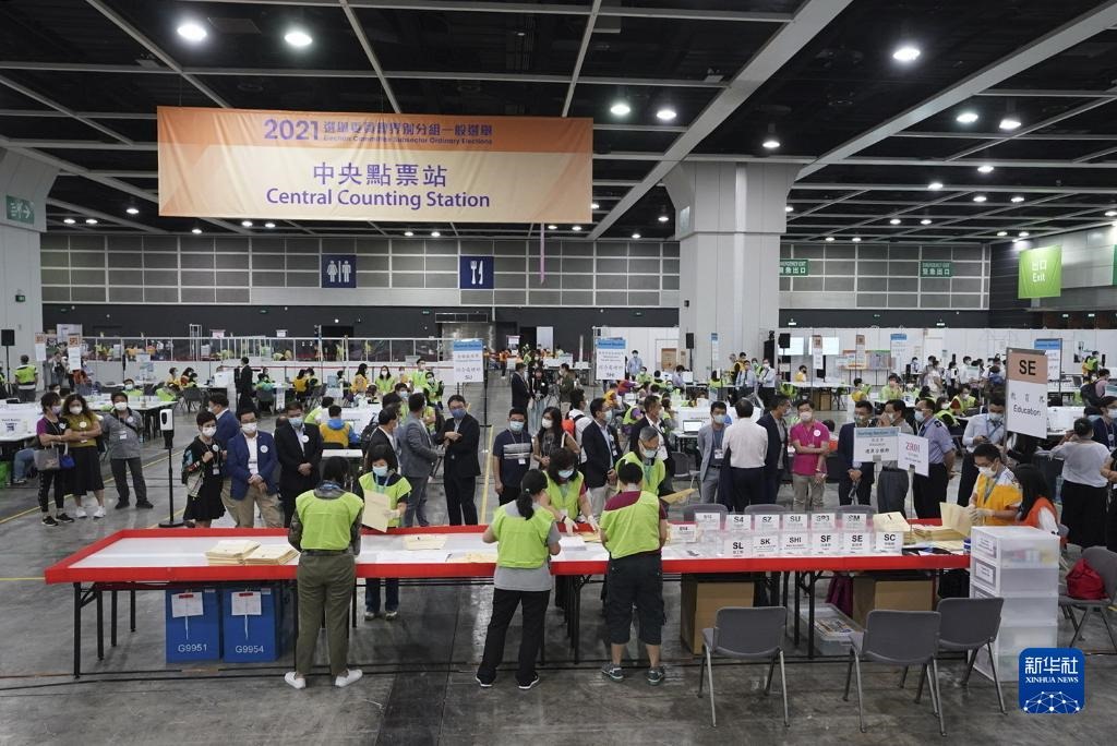 2021年香港特別行政區(qū)選舉委員會(huì)界別分組一般選舉舉行。這是工作人員開(kāi)始點(diǎn)票(2021年9月19日攝)。新華社記者呂小煒攝