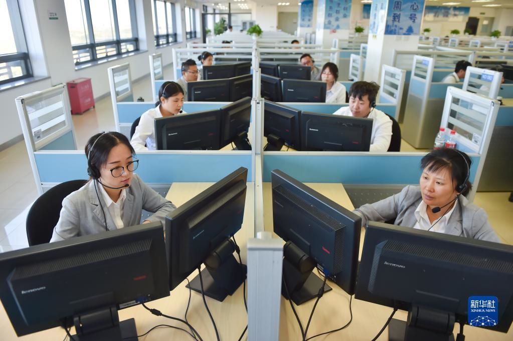 在位于北京亦莊的12345市民熱線話務(wù)大廳,工作人員接聽熱線電話(2019年11月13日攝)。新華社記者 彭子洋 攝