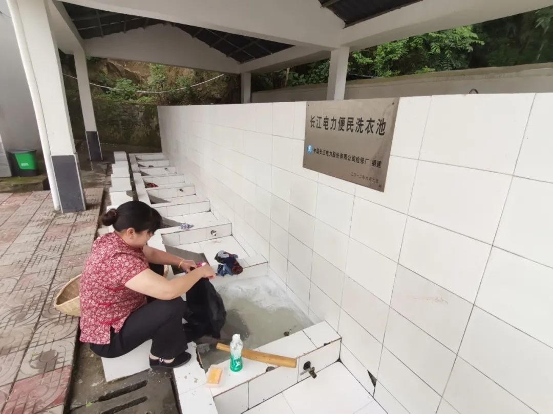 在許家沖村廣場(chǎng),村民仍然保留著用棒槌洗衣的傳統(tǒng)。過去是在江邊洗衣服,現(xiàn)在是無磷洗衣粉,污水進(jìn)行集中處理,既照顧到村民生活習(xí)慣又環(huán)保。