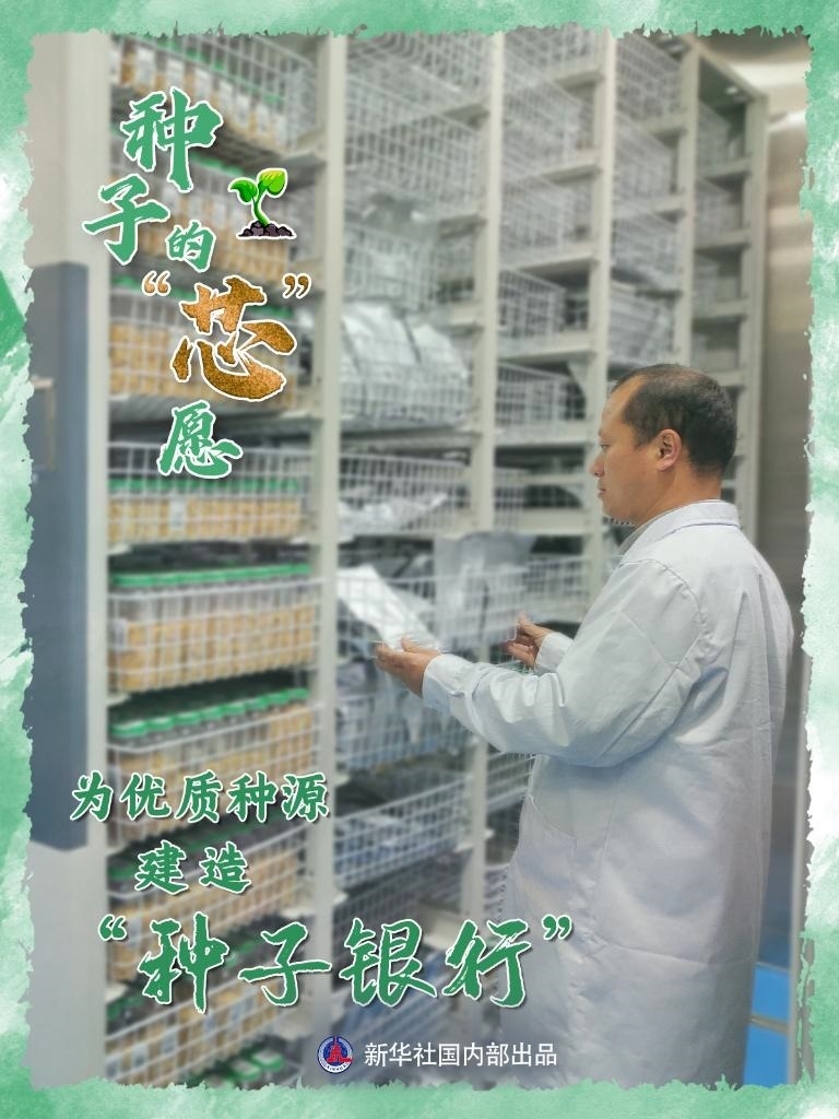 接收、去重、清選、干燥、芽率測定……最終,珍貴的種源會被裝入適合它的容器,貼上獨一無二的“身份證號碼”標簽,進入零下18攝氏度、濕度30%的冷凍艙中“冬眠”。如今,包括“貓耳兒豆角”在內(nèi)的近5萬份種源已存入“種子銀行”。