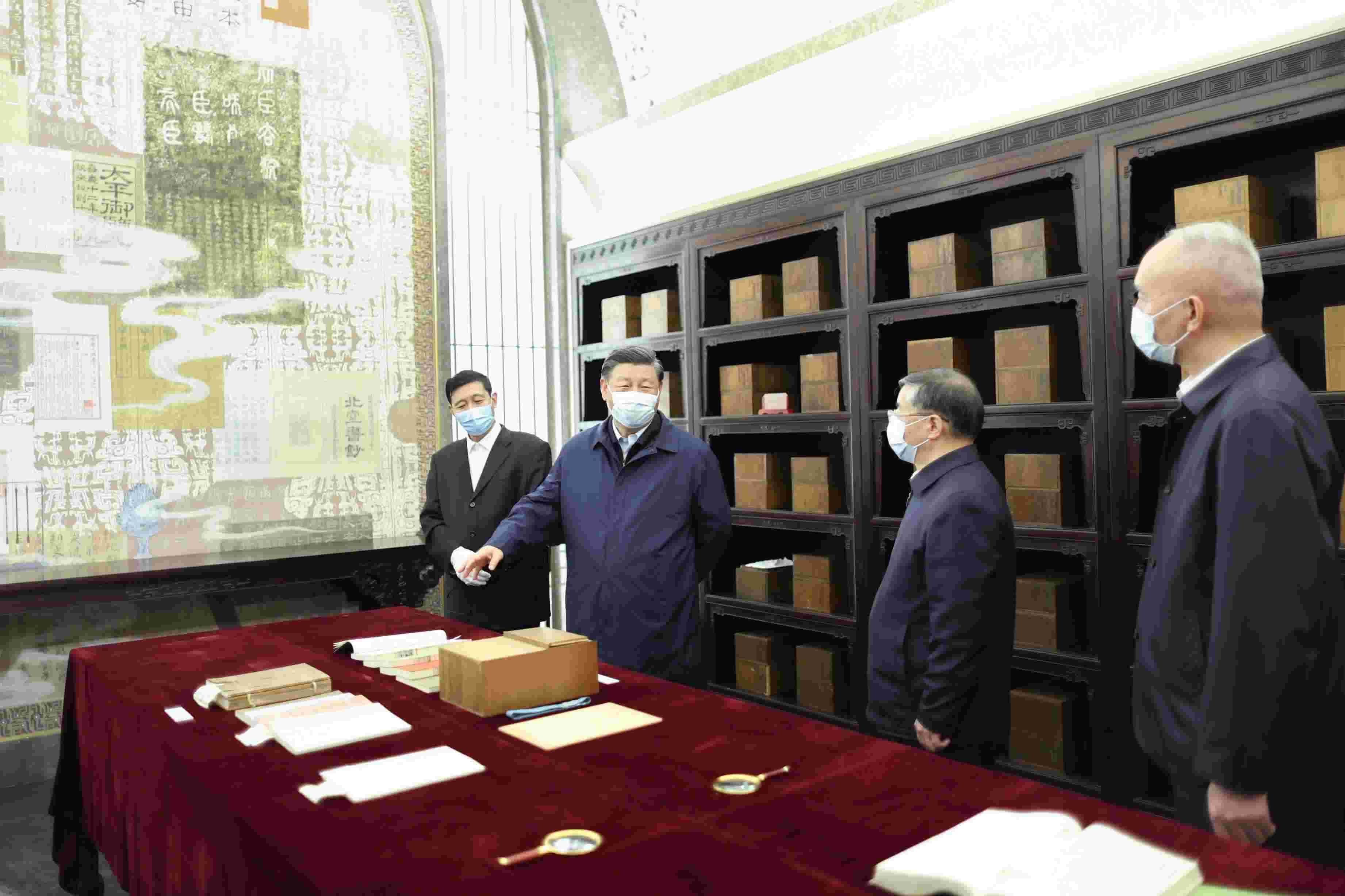 考察當(dāng)天,習(xí)近平總書(shū)記首先走進(jìn)文華堂,聽(tīng)取版本館規(guī)劃建設(shè)有關(guān)情況介紹。