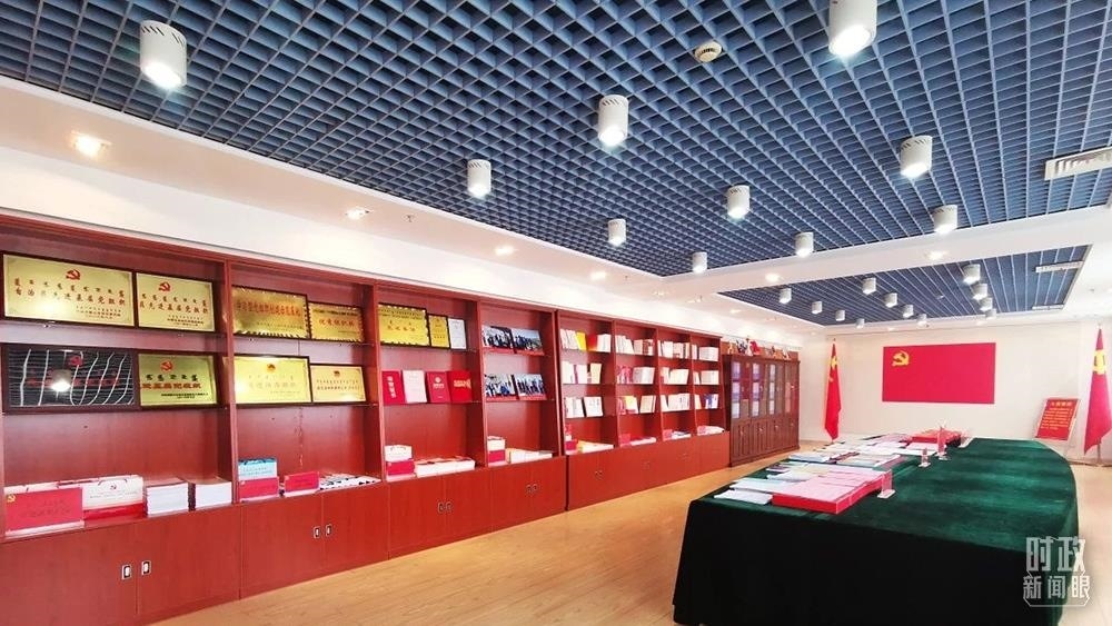 △內(nèi)蒙古自治區(qū)自然資源廳黨員活動室。2019年7月,習(xí)近平總書記曾在這里調(diào)研指導(dǎo)自然資源廳開展“不忘初心、牢記使命”主題教育。(總臺央視記者張曉鵬拍攝)
