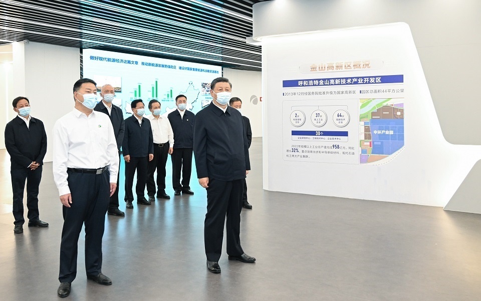 6月7日至8日,中共中央總書(shū)記、國(guó)家主席、中央軍委主席習(xí)近平在內(nèi)蒙古考察。這是7日下午,習(xí)近平在呼和浩特中環(huán)產(chǎn)業(yè)園考察。