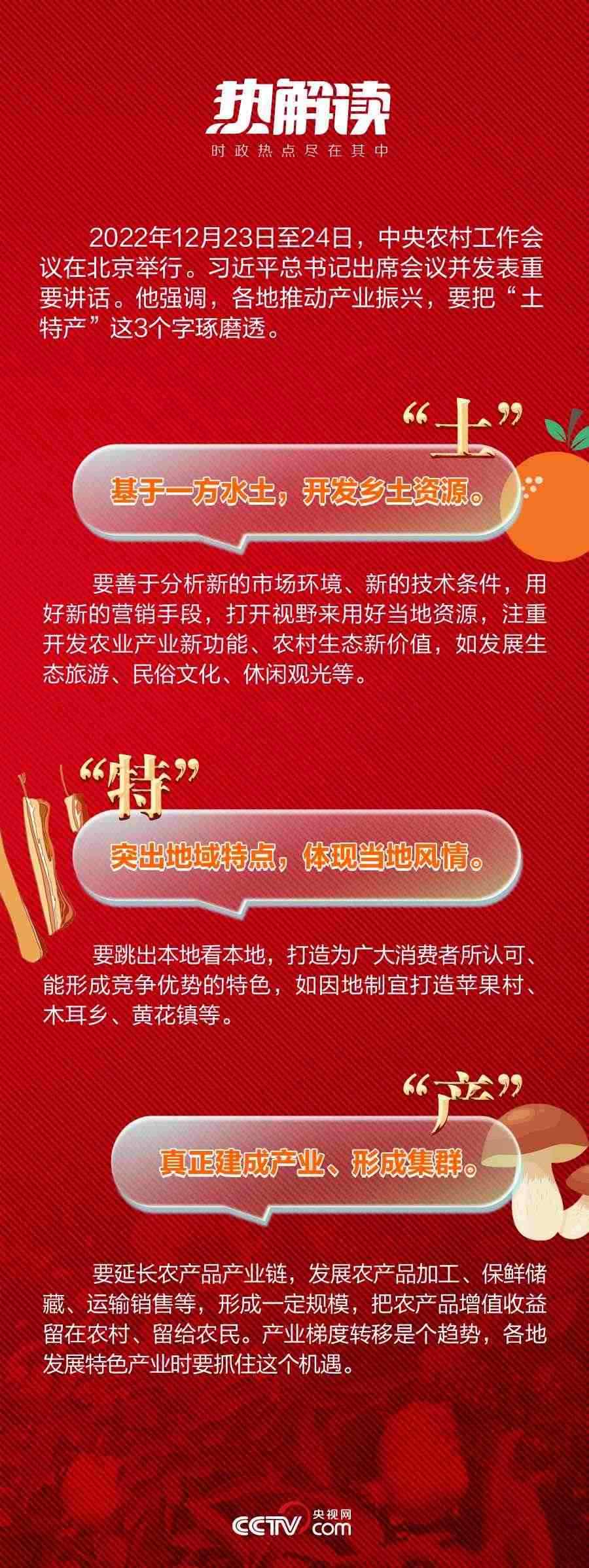 從贛南的茶油到秦嶺的木耳,從寧夏的葡萄酒到內(nèi)蒙古的馬鈴薯……基于一方水土,開發(fā)鄉(xiāng)土資源;突出地域特點,體現(xiàn)當(dāng)?shù)仫L(fēng)情;真正建成產(chǎn)業(yè),形成集群的“土特產(chǎn)”三字訣,始終貫穿于總書記對于鄉(xiāng)村振興的戰(zhàn)略謀劃中。