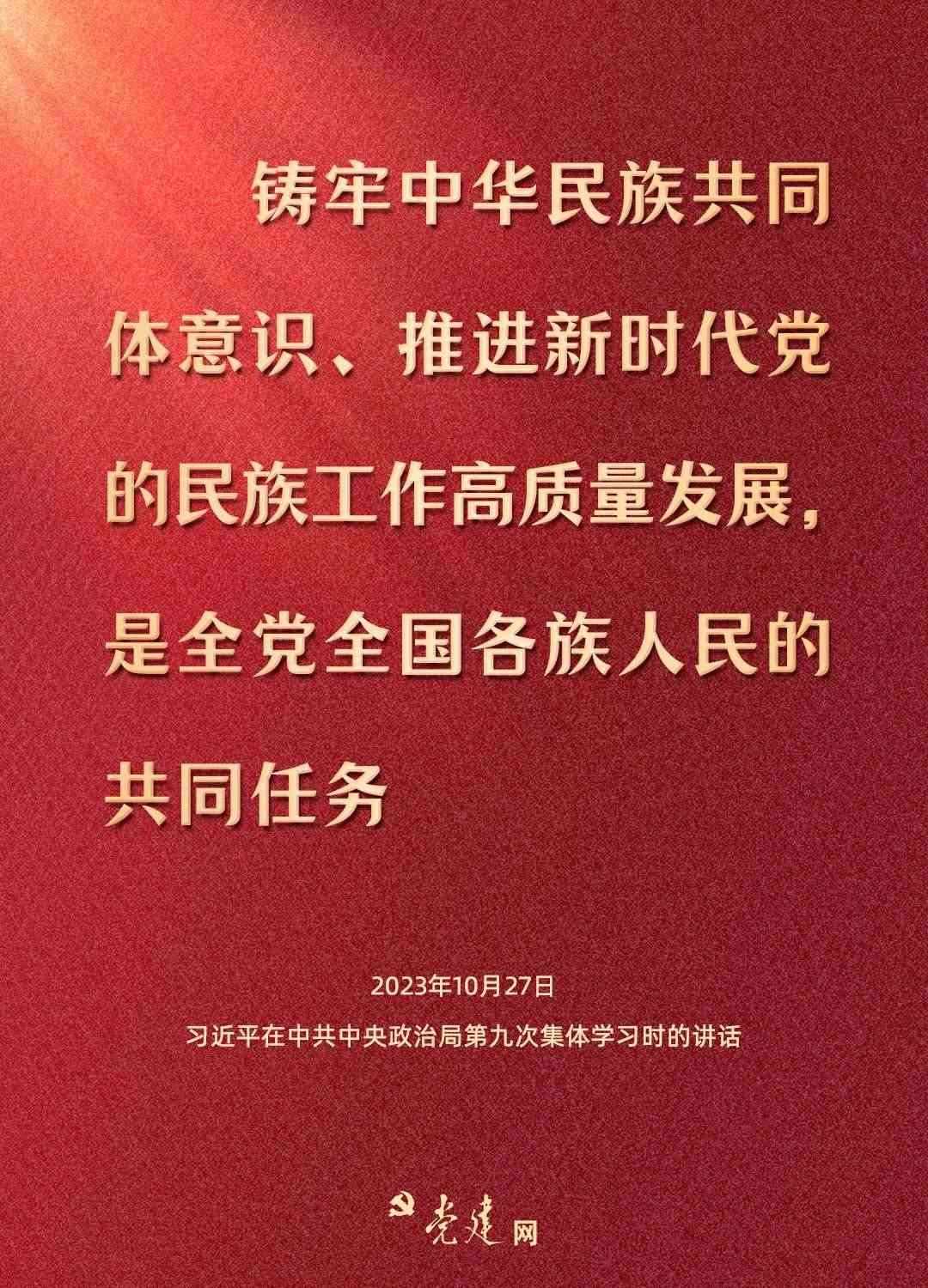 中共中央政治局10月27日下午就鑄牢中華民族共同體意識進(jìn)行第九次集體學(xué)習(xí),習(xí)近平總書記主持學(xué)習(xí)并發(fā)表重要講話??靵硪粓D學(xué)習(xí)總書記關(guān)于鑄牢中華民族共同體意識的精彩論述!
