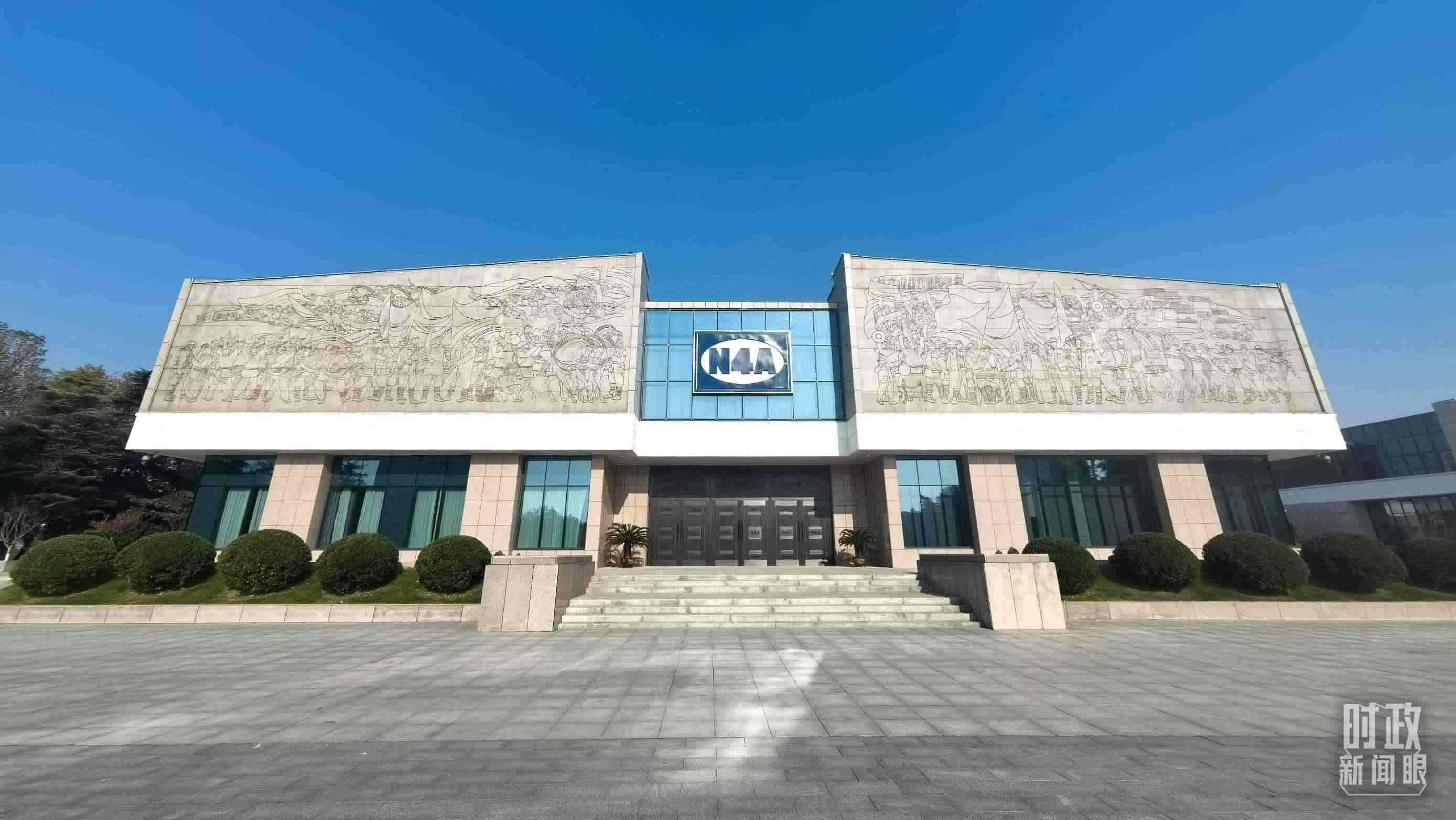新四軍紀(jì)念館于1986年10月建成開放,主館區(qū)的主體建筑外形呈“四”字形設(shè)計(jì),“N4A”臂章鑲嵌在主建筑正門上方,“N4A”是新四軍的英文縮寫。主建筑上方東、西兩側(cè)分別建有兩面旗形花崗石陰雕畫,再現(xiàn)了“兩軍會(huì)師”和“重建軍部”的歷史場(chǎng)景。