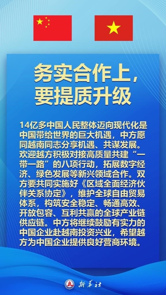 雙方同意發(fā)表《關(guān)于進(jìn)一步深化和提升全面戰(zhàn)略合作伙伴關(guān)系、構(gòu)建具有戰(zhàn)略意義的中越命運(yùn)共同體的聯(lián)合聲明》。