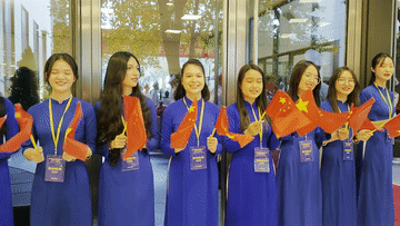 習(xí)近平總書(shū)記和夫人彭麗媛抵達(dá)國(guó)家會(huì)議中心時(shí),受到越方青年代表熱烈歡迎。