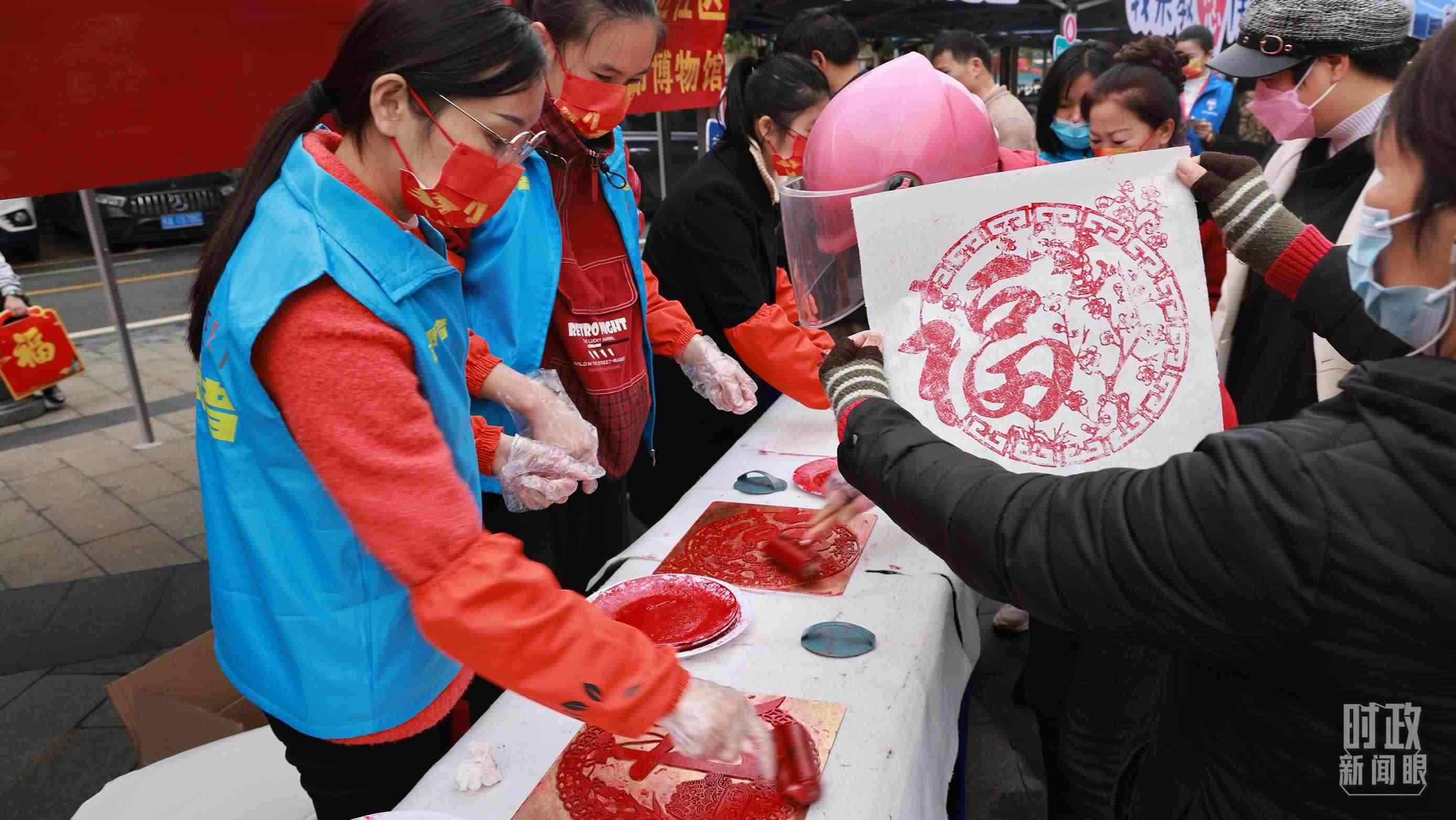 △蟠龍社區(qū)居民在社區(qū)活動(dòng)上刻板畫。