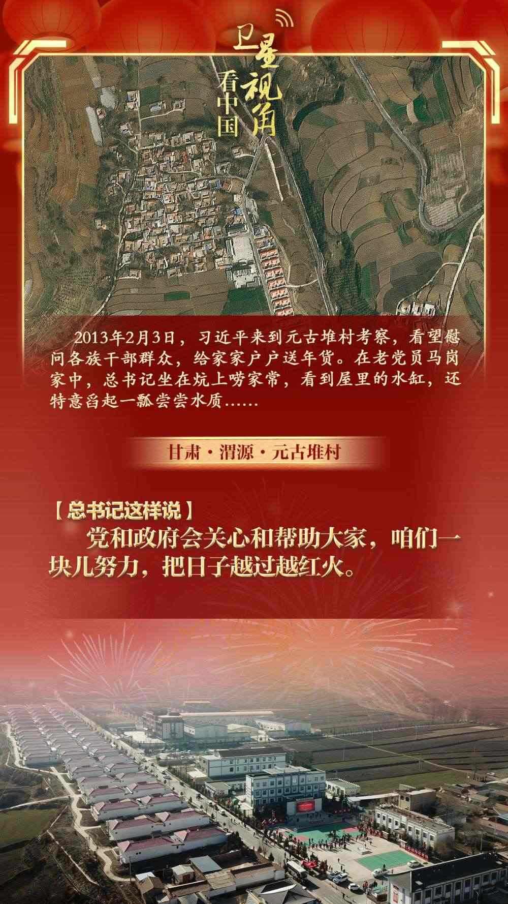 讓我們通過衛(wèi)星視角,看看總書記春節(jié)前夕考察過的那些鄉(xiāng)村,重溫總書記和村民們?cè)谝黄鸬臏嘏查g。