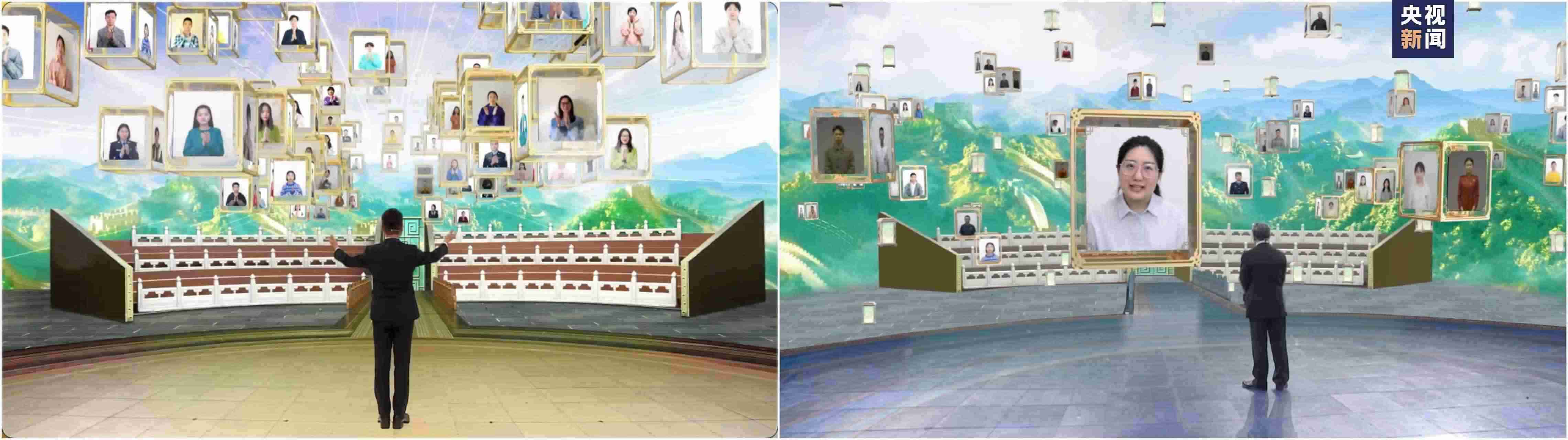 在演播室視覺呈現(xiàn)上,節(jié)目用約1500平方米的大屏幕全景構(gòu)建整體化視覺窗口,緊扣主題挖掘核心設(shè)計意象:歷史中的典故,典故中的智慧,智慧中的文字。層層書頁展現(xiàn)文明的厚重,點點光芒象征智慧的結(jié)晶,道道光線代表思想的傳承和弘揚……形成了獨屬于《平“語”近人》節(jié)目品牌的主視覺空間場。