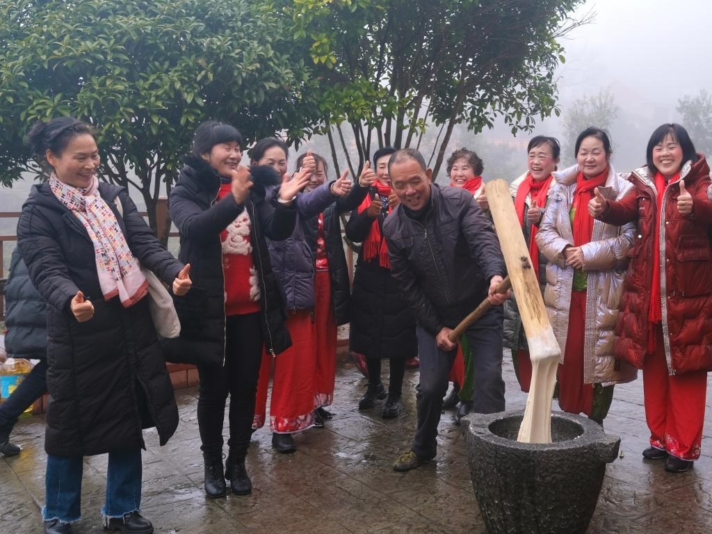 2月2日,神山村群眾一同打糍粑準(zhǔn)備迎接南方小年。(受訪(fǎng)者供圖)