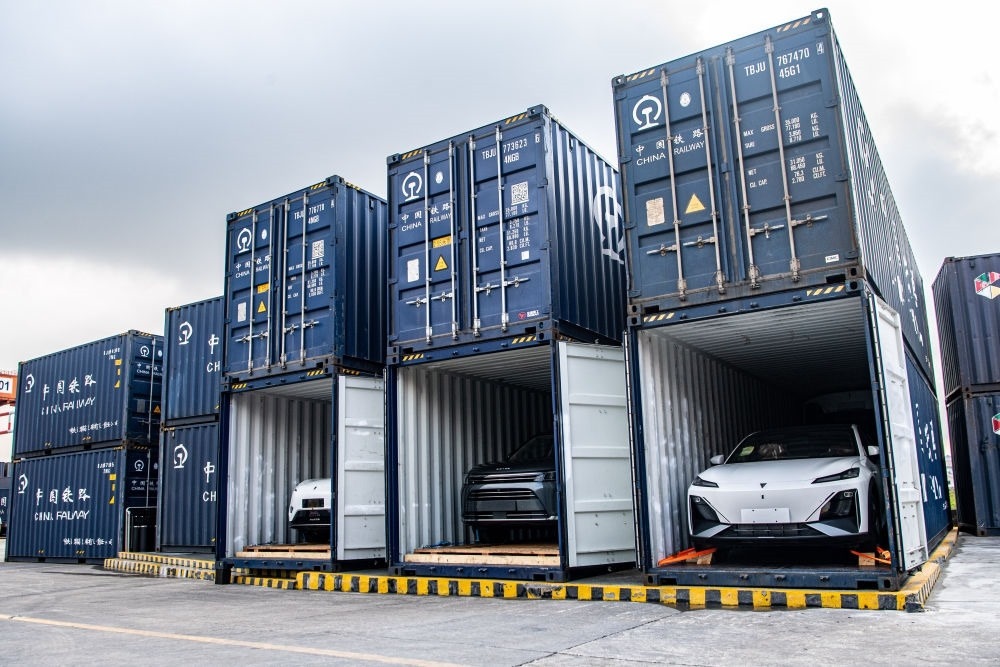 這是2024年4月22日在重慶團(tuán)結(jié)村中心站拍攝的出口汽車(chē)。