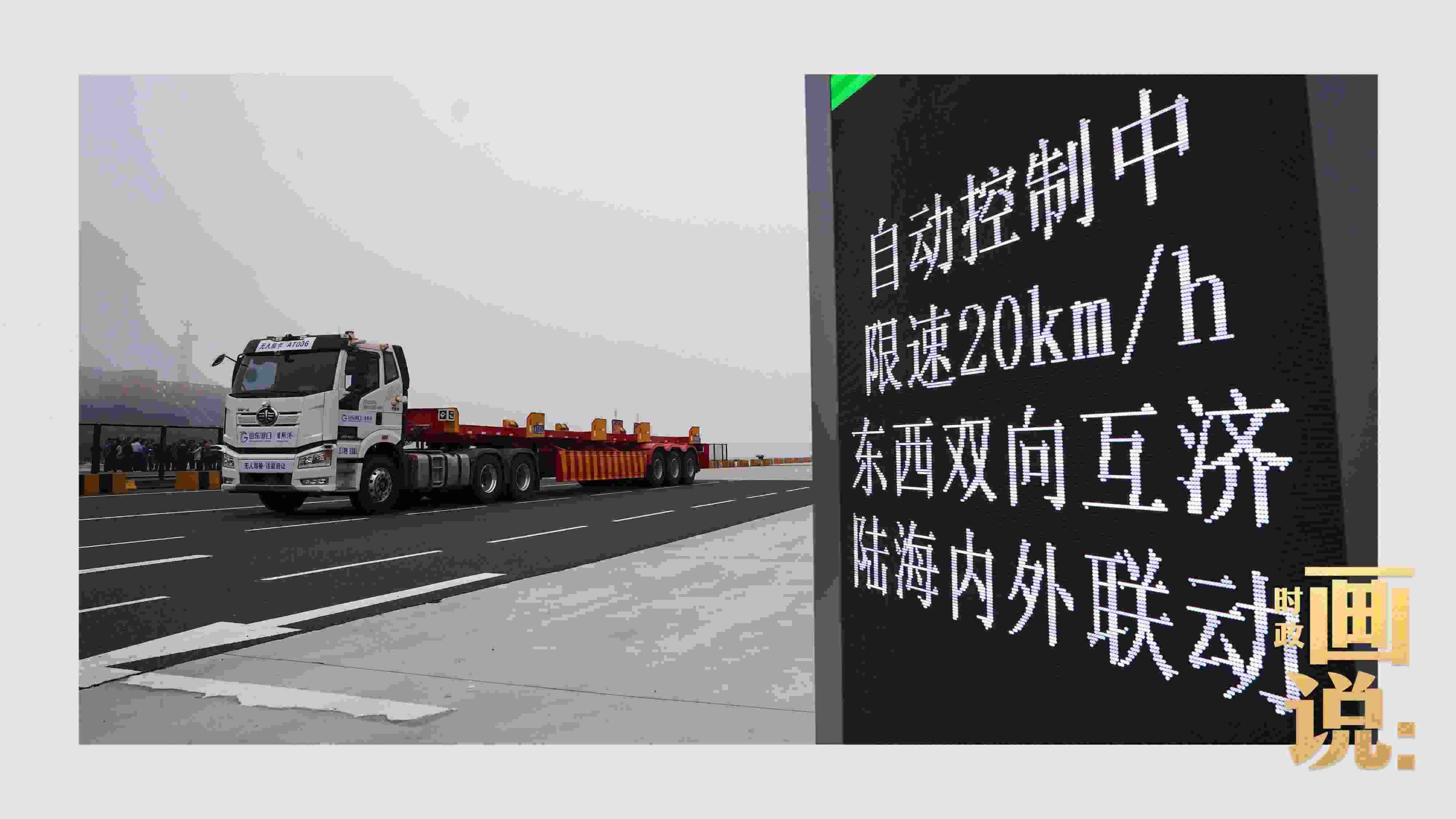 △山東港口集團(tuán)日照港順岸開放式全自動(dòng)化集裝箱碼頭,無(wú)人集卡車在運(yùn)送集裝箱。