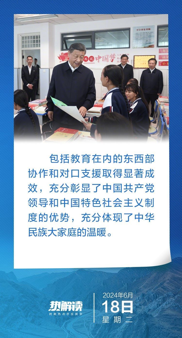 6月18日下午,在青海省考察的習(xí)近平總書記,首站來到這所中學(xué)看望老師和同學(xué)們。他先后走進食堂、宿舍、教室,關(guān)心學(xué)生們的飲食、住宿、學(xué)習(xí)……了解當?shù)厣钊胪七M教育工作東西部協(xié)作和對口支援等情況。