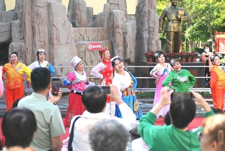 2024年9月25日,居民在寧夏銀川市金鳳區(qū)長(zhǎng)城花園社區(qū)廣場(chǎng)表演舞蹈。新華社記者 毛竹 攝