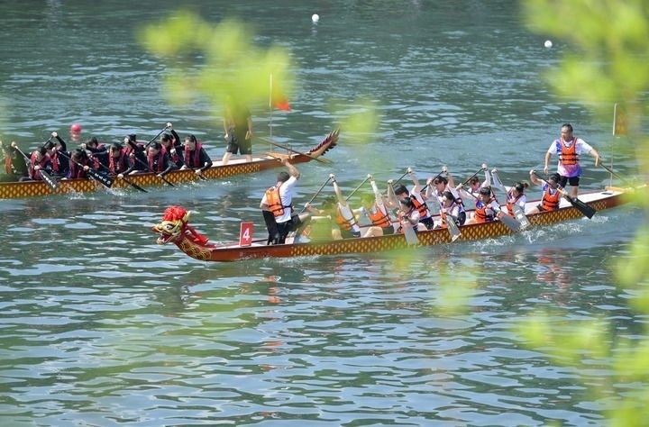 2024年8月10日,湖北省恩施土家族苗族自治州宣恩縣城區(qū)貢水河上,選手在第十二屆全國(guó)少數(shù)民族傳統(tǒng)體育運(yùn)動(dòng)會(huì)“同心暢享”系列活動(dòng)——全國(guó)龍舟邀請(qǐng)賽200米直道賽預(yù)賽中。新華社發(fā)(宋文攝)