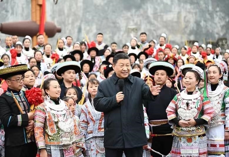 在四川大涼山腹地,走進彝族貧困戶家里,和村民代表、駐村扶貧工作隊員圍坐在火塘邊,謀劃精準(zhǔn)脫貧之策;在貴州畢節(jié)化屋村,告訴鄉(xiāng)親們“全面小康一個民族不能少,全面建設(shè)社會主義現(xiàn)代化國家,一個民族也不能落下”;在西藏,指出“我們是一個中華民族共同體,要同舟共濟邁向第二個百年奮斗目標(biāo)”……習(xí)近平總書記多次走到各族群眾中間,傾聽他們的心聲,共話民族地區(qū)發(fā)展,中華民族共同體意識日益深入人心。