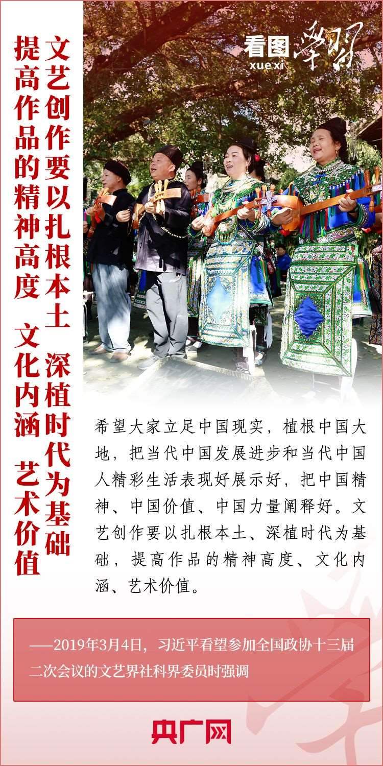 十年來,我國廣大文藝工作者深入生活、扎根人民,創(chuàng)作出一大批彰顯中國精神、體現(xiàn)人文關懷、富有藝術創(chuàng)新力的優(yōu)質文藝作品,努力用豐富多彩的文藝精品滿足人們對精神文化生活的需求。如何創(chuàng)作出更多無愧于時代、無愧于人民的優(yōu)秀作品?讓我們一起深刻領悟總書記的“文藝觀”。