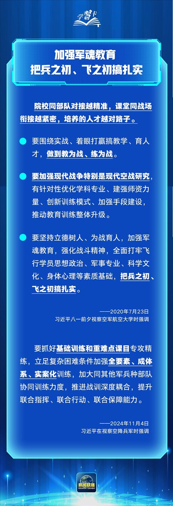 學(xué)習(xí)卡丨習(xí)近平:加強軍魂教育,把兵之初、飛之初搞扎實
