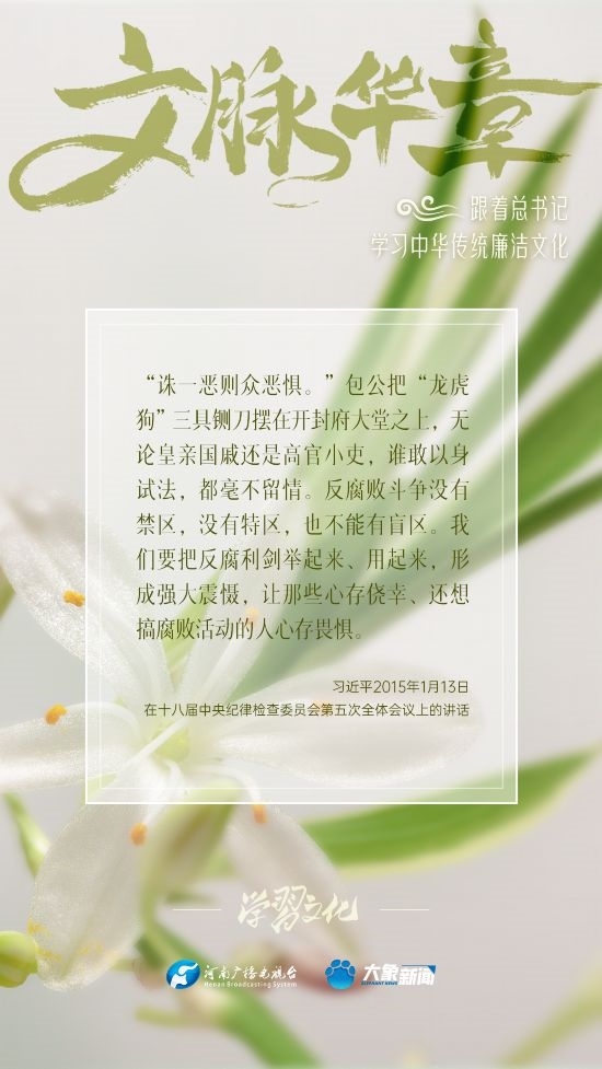 中華優(yōu)秀傳統(tǒng)文化蘊含著豐富的廉潔文化,習近平總書記曾指出:沒有中華優(yōu)秀傳統(tǒng)文化、革命文化、社會主義先進文化的底蘊和滋養(yǎng),信仰信念就難以深沉而執(zhí)著??倳洺3R?jīng)據(jù)典,教育引導廣大黨員干部正心修身,涵養(yǎng)文化,守住為政之本。大象新聞分五期為您梳理,我們一起跟著總書記學習中華傳統(tǒng)廉潔文化。今天推出第五期。