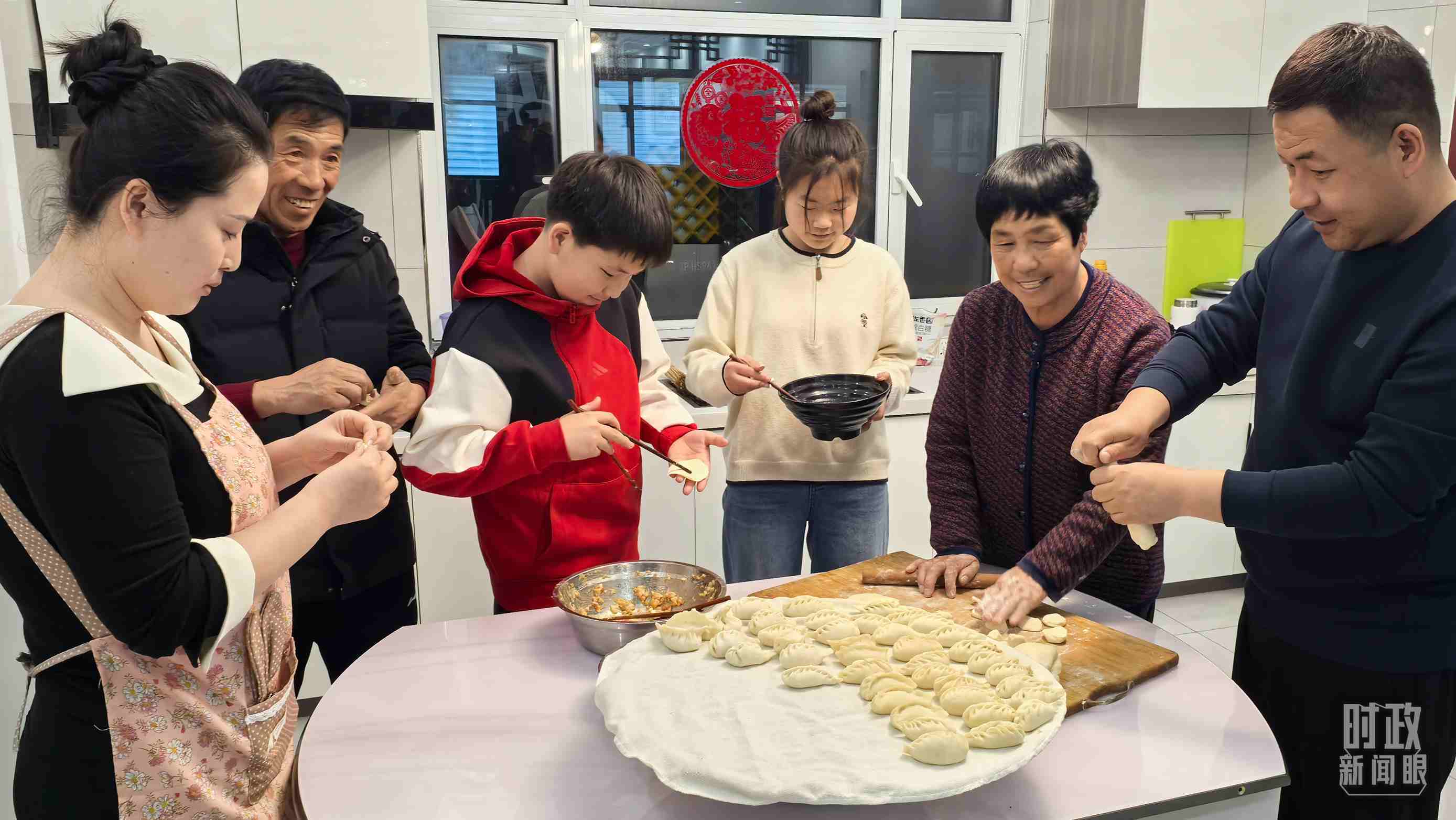 △王寶維一家正在包餃子。(總臺央視記者張垚拍攝)