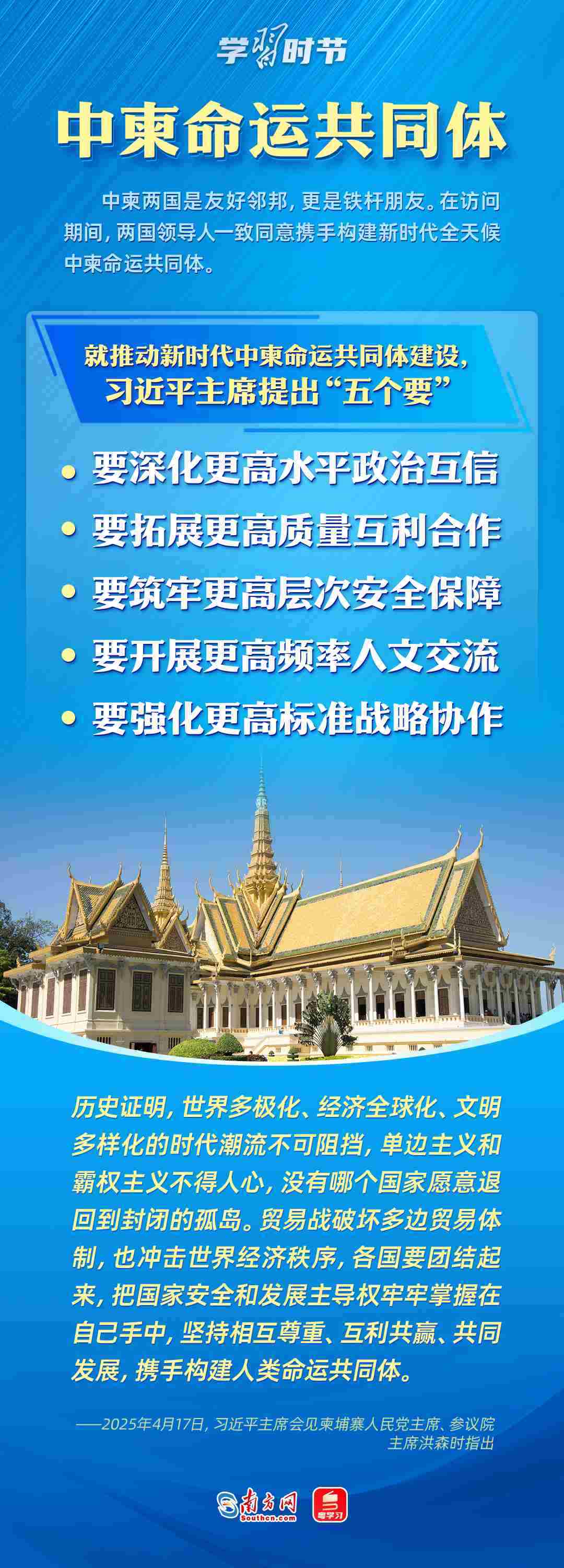 日前,中央周邊工作會(huì)議召開(kāi),強(qiáng)調(diào)要聚焦構(gòu)建周邊命運(yùn)共同體,努力開(kāi)創(chuàng)周邊工作新局面。4月14日至18日,習(xí)近平主席出訪(fǎng)東南亞三國(guó)——越南、馬來(lái)西亞、柬埔寨。這是習(xí)近平主席今年首次出訪(fǎng),對(duì)推動(dòng)中國(guó)同三國(guó)關(guān)系發(fā)展具有重大意義,也為周邊命運(yùn)共同體建設(shè)擘畫(huà)了新藍(lán)圖。