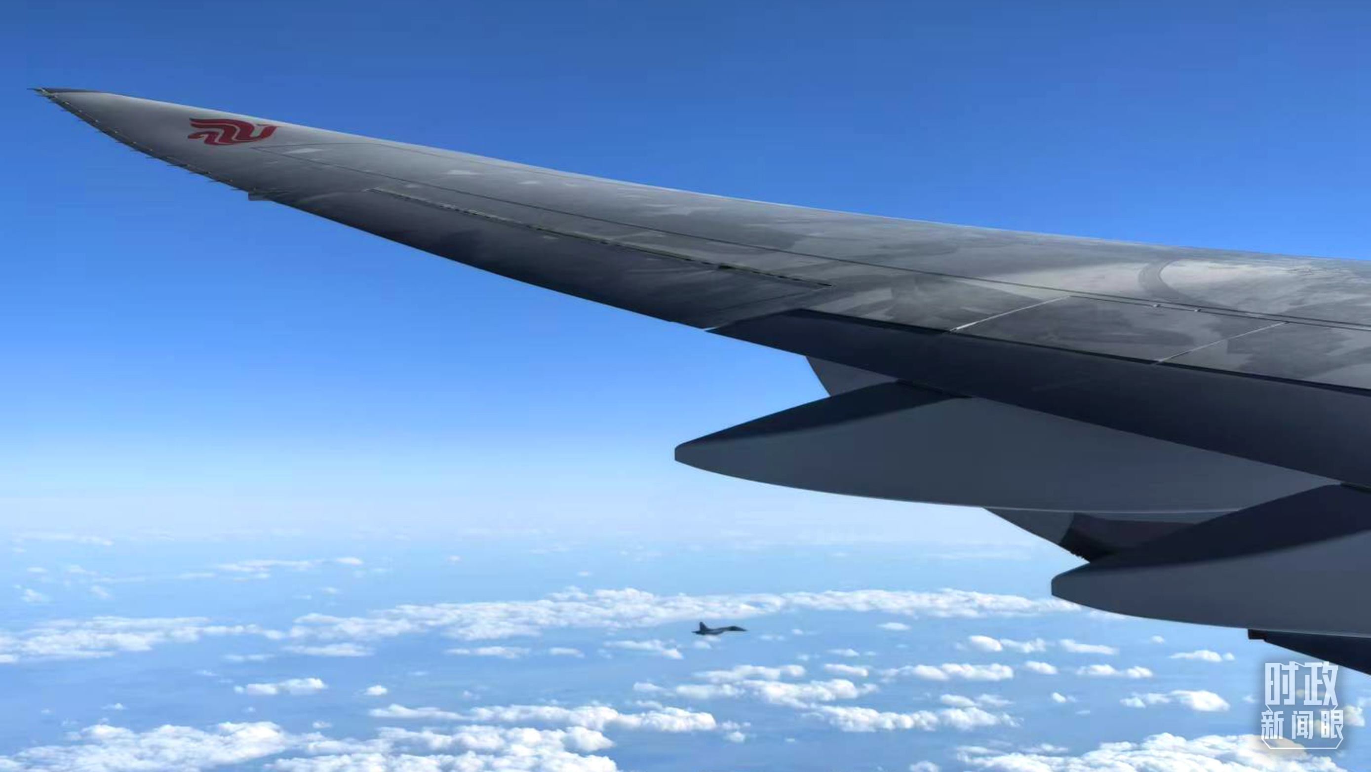 △俄羅斯戰(zhàn)機(jī)升空護(hù)航。(總臺(tái)央視記者李錚拍攝)