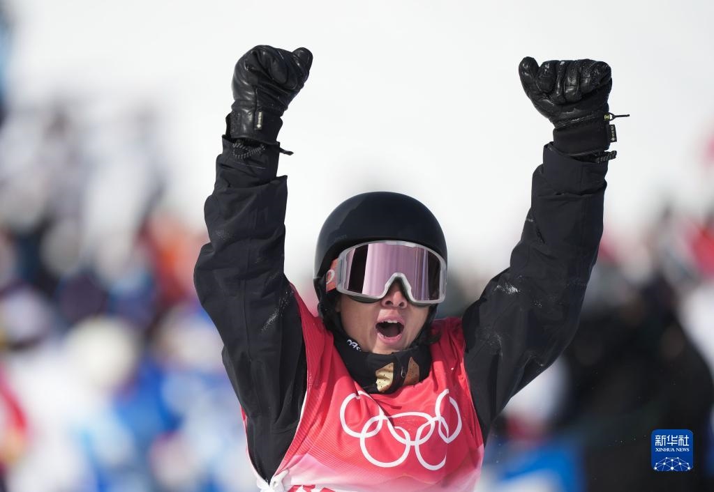 2月7日,中國選手蘇翊鳴在比賽后慶祝。