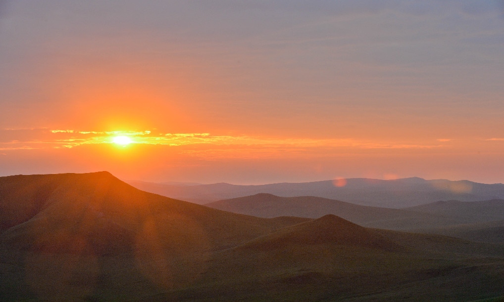 內蒙古烏拉蓋草原上的日出景象(2014年6月22日攝)。