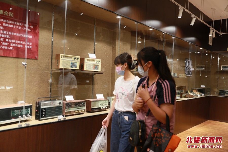 8月17日,游客在內(nèi)蒙古包頭市固陽縣“固陽稒事”美食特產(chǎn)文創(chuàng)街的收音機(jī)收藏館參觀。