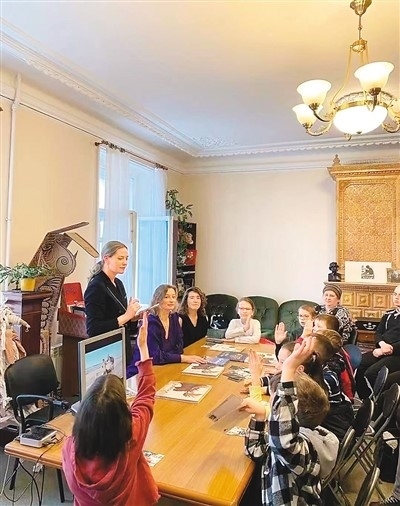今年4月,在俄羅斯圣彼得堡兒童圖書中心,一群俄羅斯小朋友圍坐在一起目不轉(zhuǎn)睛地盯著電腦屏幕。畫面中,中國(guó)作家黑鶴身在大草原,被駿馬、牧羊犬環(huán)繞,將《鄂溫克的駝鹿》的創(chuàng)作故事與生活經(jīng)歷娓娓道來。天真活潑的孩子們紛紛舉手,提出了一個(gè)個(gè)充滿童趣的問題:筆名黑鶴是什么意思?鄂溫克人的帳篷什么樣?蚊煙是干什么用的?駝鹿能長(zhǎng)多高?