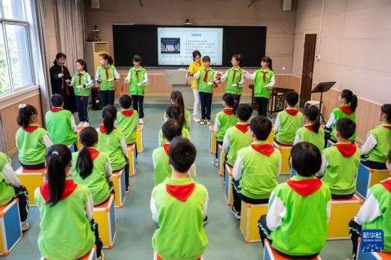 這是4月12日在武陵區(qū)北正街小學(xué)拍攝的常德絲弦教學(xué)課堂。