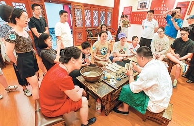 在東城區(qū)傳統(tǒng)韻味體驗(yàn)之旅中,游客在吉祥大戲院國粹京劇體驗(yàn)基地可以穿戴上京劇服裝道具,體驗(yàn)戲曲演員化妝過程,品嘗戲曲主題“吉祥咖啡”,觀看經(jīng)典京劇演出,與名師名家互動,零距離感受國粹經(jīng)典的魅力;在廣譽(yù)遠(yuǎn)中醫(yī)藥文化體驗(yàn)基地,游客通過聽中醫(yī)講解、辨藥材識優(yōu)劣、手工制作香囊等多種體驗(yàn)方式,感受中醫(yī)藥文化。在和平菓局京味文化體驗(yàn)基地,游客可以走進(jìn)煤廠胡同、小覺寺等老北京場景,體驗(yàn)拉洋片、草編藝術(shù)、皮影、捏面人等傳統(tǒng)京味文化。