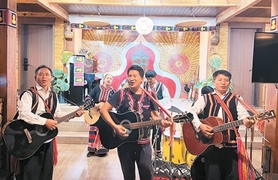 在云南省瀾滄拉祜族自治縣,拉祜族房東扎努的民宿在國慶節(jié)假期迎來滿房。今年4月,扎努改造自家老房子,把民族音樂與民宿相結(jié)合,開了一家音樂民宿——拉祜音宿。“拉祜族是能歌善舞的民族。我喜歡與人交流,喜歡鄉(xiāng)村風(fēng)光和家鄉(xiāng)氣候,所以選擇回鄉(xiāng)開民宿?!弊鳛榉繓|,扎努常常帶游客一起唱歌跳舞,表演他創(chuàng)作的《我在瀾滄等你》《快樂拉祜》等歌曲,并向他們介紹拉祜族的民族歷史和文化。