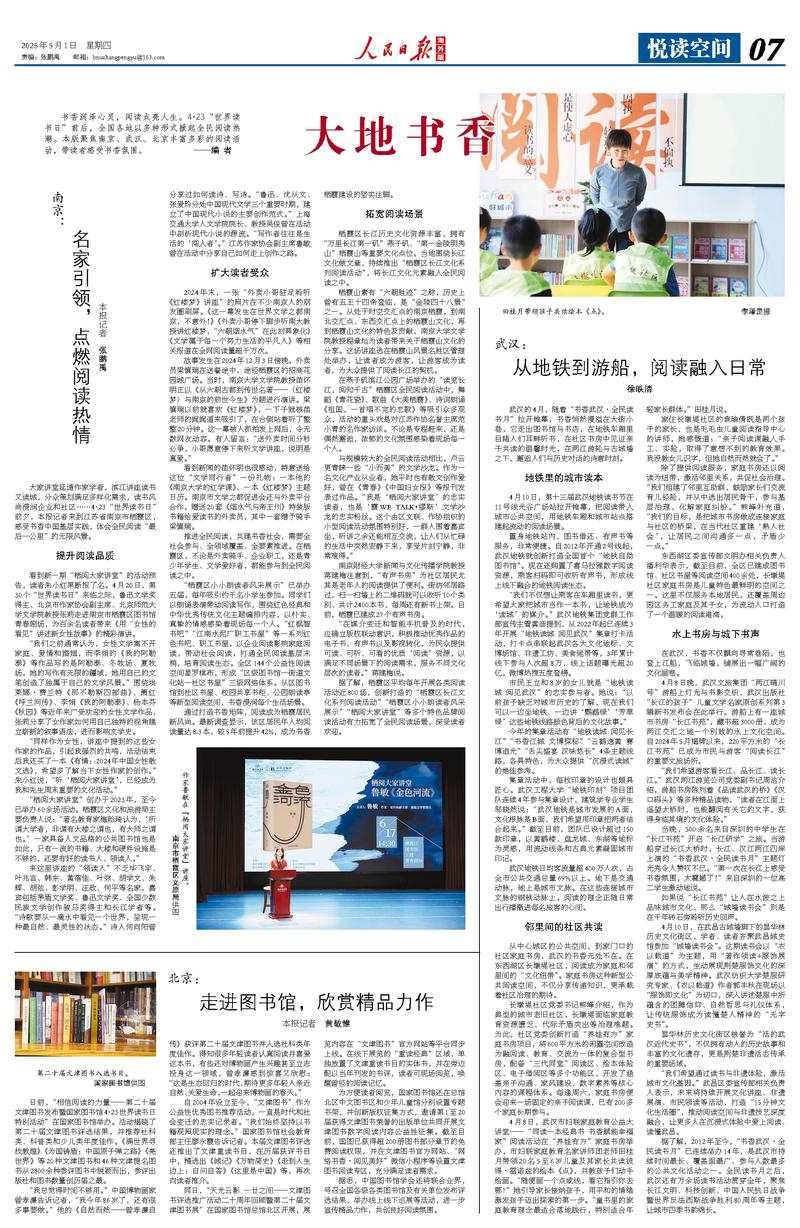 書香潤澤心靈,閱讀點亮人生。4·23“世界讀書日”前后,全國各地以多種形式掀起全民閱讀熱潮。本版聚焦南京、武漢、北京豐富多彩的閱讀活動,帶讀者感受書香氛圍。