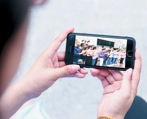 市民們用手機及時觀看新聞聯(lián)播。