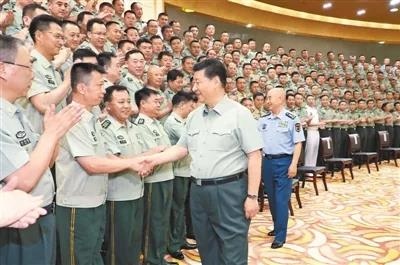 7月15日至16日,中共中央總書記、國家主席、中央軍委主席習(xí)近平在內(nèi)蒙古考察并指導(dǎo)開展“不忘初心、牢記使命”主題教育。這是16日上午,習(xí)近平在呼和浩特親切接見駐內(nèi)蒙古部隊(duì)副師職以上領(lǐng)導(dǎo)干部和團(tuán)級單位主官,代表黨中央和中央軍委向駐內(nèi)蒙古部隊(duì)全體官兵致以誠摯問候?! ⌒氯A社記者 李 剛攝