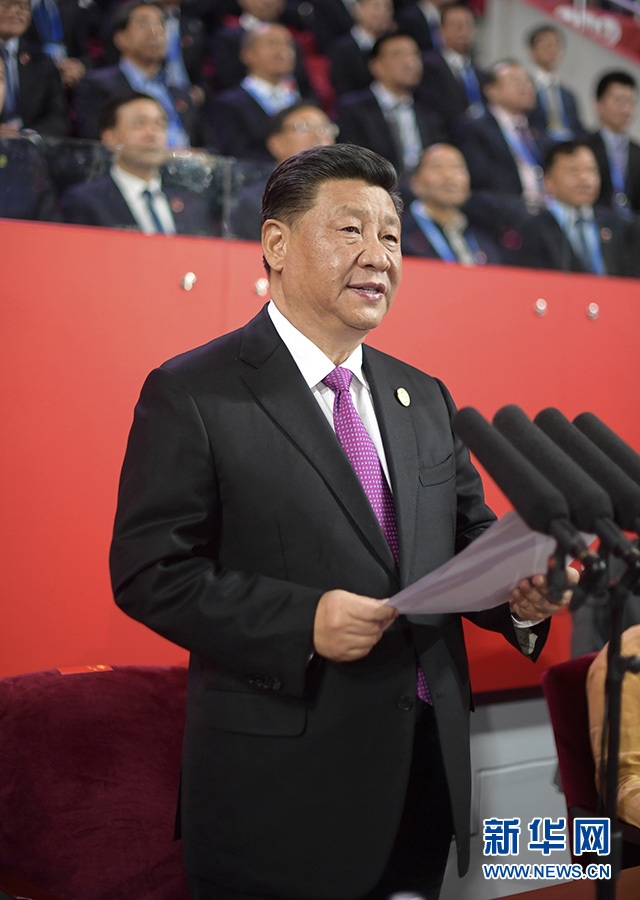 5月15日晚,國家主席習(xí)近平和夫人彭麗媛在北京國家體育場(chǎng)同出席亞洲文明對(duì)話大會(huì)的外方領(lǐng)導(dǎo)人夫婦共同出席亞洲文化嘉年華活動(dòng)。這是習(xí)近平發(fā)表致辭。 新華社記者 李學(xué)仁 攝