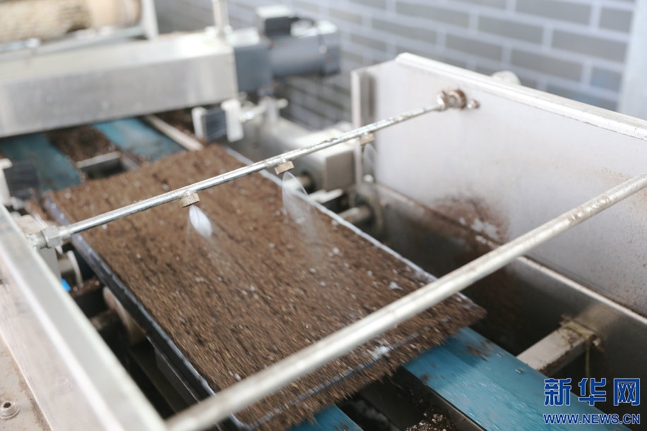 自動播種機(jī)通過流水線方式完成播種、澆水流程。新華網(wǎng)曹楨攝