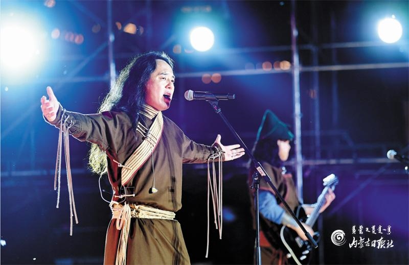 8月16日晚,助演嘉賓藍(lán)野樂隊(duì)激情獻(xiàn)唱。內(nèi)蒙古日報(bào)記者 王磊 懷特烏勒斯 攝