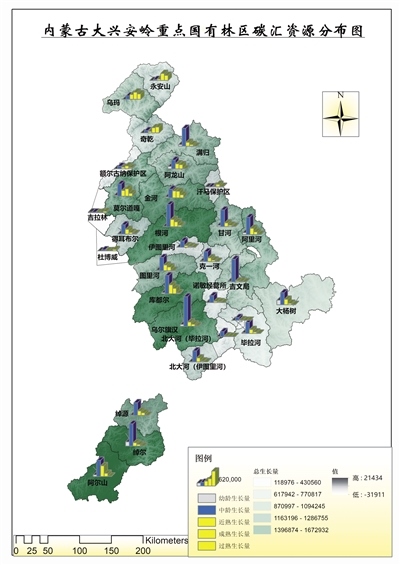 內(nèi)蒙古大興安嶺重點(diǎn)國(guó)有林區(qū)碳匯資源分布圖。