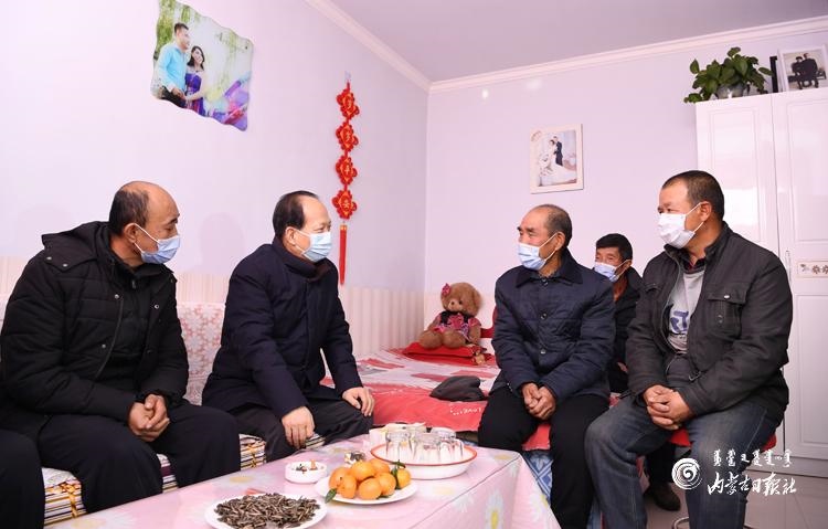 屋外白雪皚皚,屋內(nèi)爐火熊熊。石泰峰首先來到庫倫圖村脫貧戶連縻拴家,與老倆口親切交談,深入了解飲水、住房、健康等生產(chǎn)生活狀況,與他們一起細(xì)算收入賬,詢問他們對幫扶工作的滿意度,鼓勵他們堅定信心,在政策幫扶下勤勞致富。隨后,石泰峰驅(qū)車來到六道溝村,在脫貧戶孟忠忠家,與孟忠忠、胡金柱、王鎖林、韓向林、韓金龍等貧困群眾圍坐在一起嘮起家常,詳細(xì)了解“兩不愁三保障”及飲水安全、產(chǎn)業(yè)發(fā)展等情況。得知他們雖然都是因病、因殘致貧,但生產(chǎn)生活都有保障,而且不等不靠、自我發(fā)展的心勁兒很足,石泰峰說,脫貧路上一個都不能少、一戶都不能落,今年是脫貧攻堅戰(zhàn)最后一年,也是全面建成小康社會收官之年,看到你們不但脫了貧,而且信心滿滿,很有志氣和骨氣,我很放心。幸福是奮斗出來的,希望大家在政策幫扶下繼續(xù)奮斗,共同努力脫貧致富過上好日子。石泰峰要求當(dāng)?shù)馗刹恳虻刂埔?、精?zhǔn)施策,接續(xù)推進(jìn)全面脫貧與鄉(xiāng)村振興有效銜接。