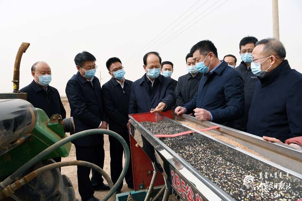 驚蟄已過,春耕在即。石泰峰一下飛機就驅(qū)車來到臨河農(nóng)場八分場,直奔田間地頭,考察春耕備耕情況。在小麥播種現(xiàn)場,他與種植戶和當?shù)馗刹抗苍掁r(nóng)桑,詳細了解土壤墑情、測土施肥、種植結(jié)構(gòu)、糧播面積、春耕資金保障等情況,并與大家一筆筆測算成本、估算收入。石泰峰說,當前正值農(nóng)業(yè)生產(chǎn)的關(guān)鍵時期,各地要不違農(nóng)時地謀劃好組織好各項工作,加強農(nóng)機、農(nóng)資、種子供應儲備,研究搞好市場供需調(diào)度和產(chǎn)銷對接,為今年糧食豐收和農(nóng)民增收打好基礎(chǔ)。他指出,耕地是最寶貴的資源,我們既要用好耕地,也要采取有效措施護地養(yǎng)地,推動農(nóng)業(yè)可持續(xù)發(fā)展?! ?/p>