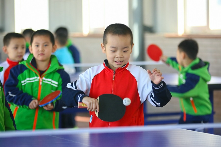 同學(xué)們正在練習(xí)乒乓球 彭瑞誠(chéng) 攝影