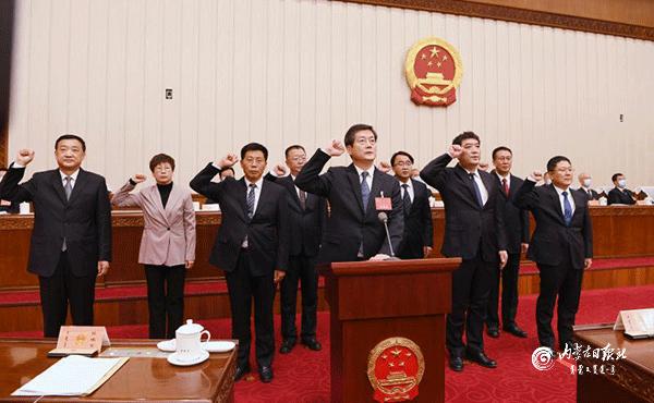 12月14日上午,自治區(qū)十三屆人大常委會(huì)第三十二次會(huì)議舉行了憲法宣誓儀式。自治區(qū)黨委書記、人大常委會(huì)主任石泰峰主持并監(jiān)誓。圖為新任職人員在依法進(jìn)行憲法宣誓。 內(nèi)蒙古日報(bào)社融媒體記者 袁永紅 攝