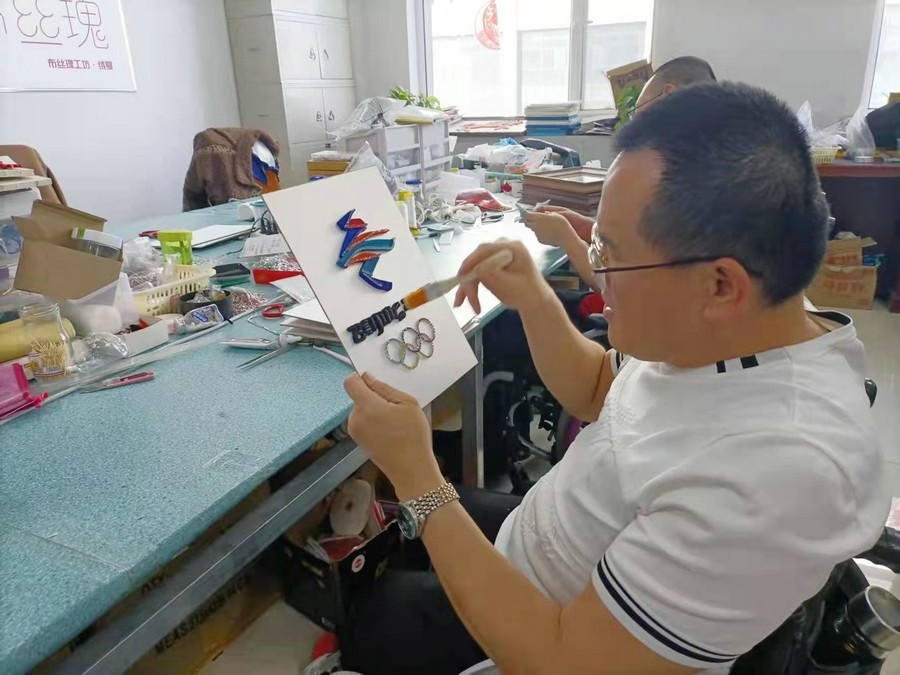 呼和浩特市殘聯(lián)相關(guān)負(fù)責(zé)人介紹,用盤扣工藝制作的北京冬奧會(huì)、冬殘奧會(huì)會(huì)徽,是將此工藝與服裝脫離開來,以裝飾畫的形式展現(xiàn)。中式盤扣具有紐帶和橋梁意義,借此表達(dá)內(nèi)蒙古殘疾人對(duì)北京冬奧會(huì)和冬殘奧會(huì)的關(guān)注,也讓內(nèi)蒙古殘疾人堅(jiān)韌不拔、自強(qiáng)不息的精神以這個(gè)作品為紐帶傳播到世界各地。